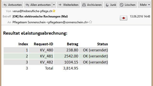 Betreff "Status Email [OK]": die Information OK in der Betreffzeile besagt, dass alle Rechnungen problemlos verarbeitet werden konnten.
